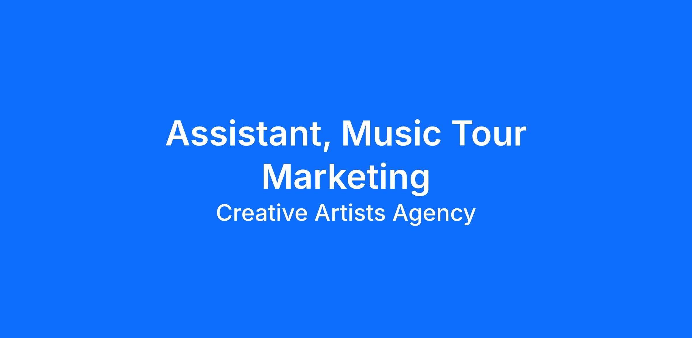 CAA is seeking an assistant to support an Executive in our Tour Marketing department in Los Angeles. The ideal candidate is curious about comedy, podcasts, and overall tour marketing. The individual should have strong administrative skills in a high-volume setting and have the ability to multi-task. A successful candidate will be organized, energetic, and able to communicate confidently. The role combines administrative work with project management and requires a positive attitude. The candidate will work with touring clients and agent teams to prepare worldwide tours and manage marketing initiatives.