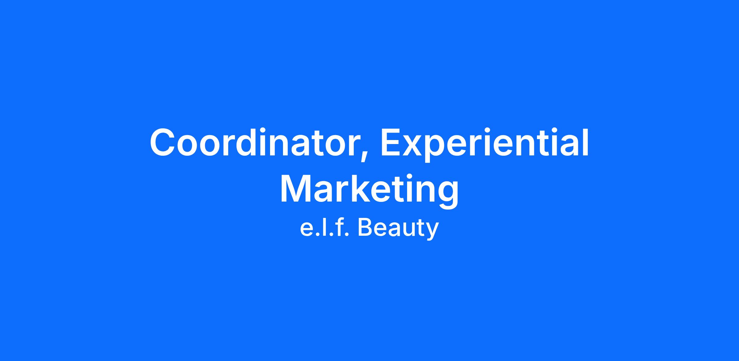The Experiential team is a group bringing bold ideas to life and treats every opportunity as a way to create unforgettable moments of joy for e.l.f.ies everywhere. We’re looking for a highly organized, detailed oriented Experiential Marketing Coordinator who thrives behind the scenes to make it all happen.