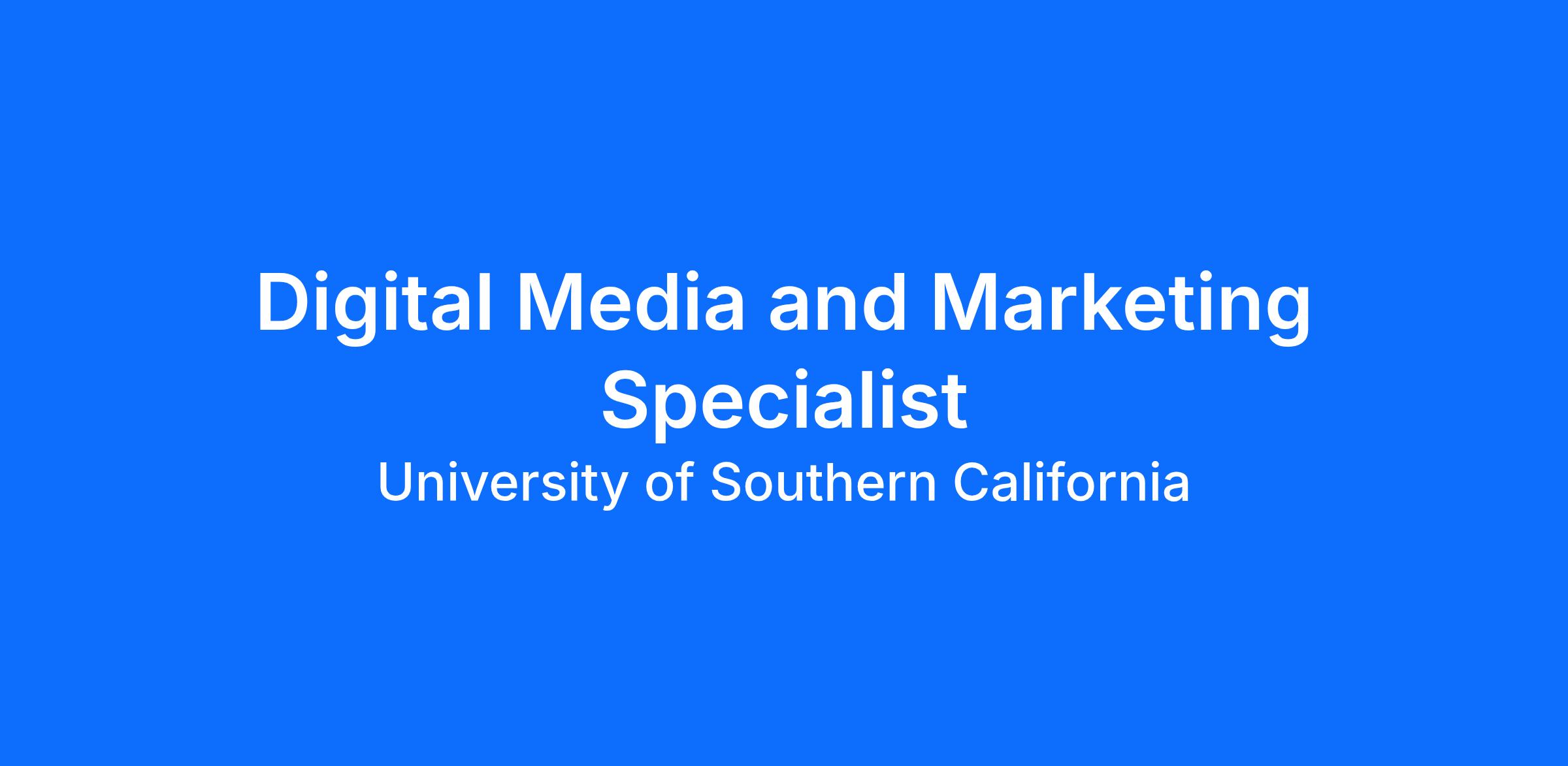 The USC Sol Price School of Public Policy has an immediate opening for a Digital Media and Marketing Specialist. The candidate will report to the Digital Media and Marketing Manager in the Price School’s Office of Marketing and Communication. The position assists with implementing organic and paid marketing strategies for USC Price degree programs by managing email drip campaigns, assisting with paid digital marketing efforts, and creating organic marketing content to drive enrollment. This position works closely with the Price School Office of Admissions to align marketing strategies with recruitment efforts to achieve enrollment objectives. This is a full-time position with a hybrid work arrangement.