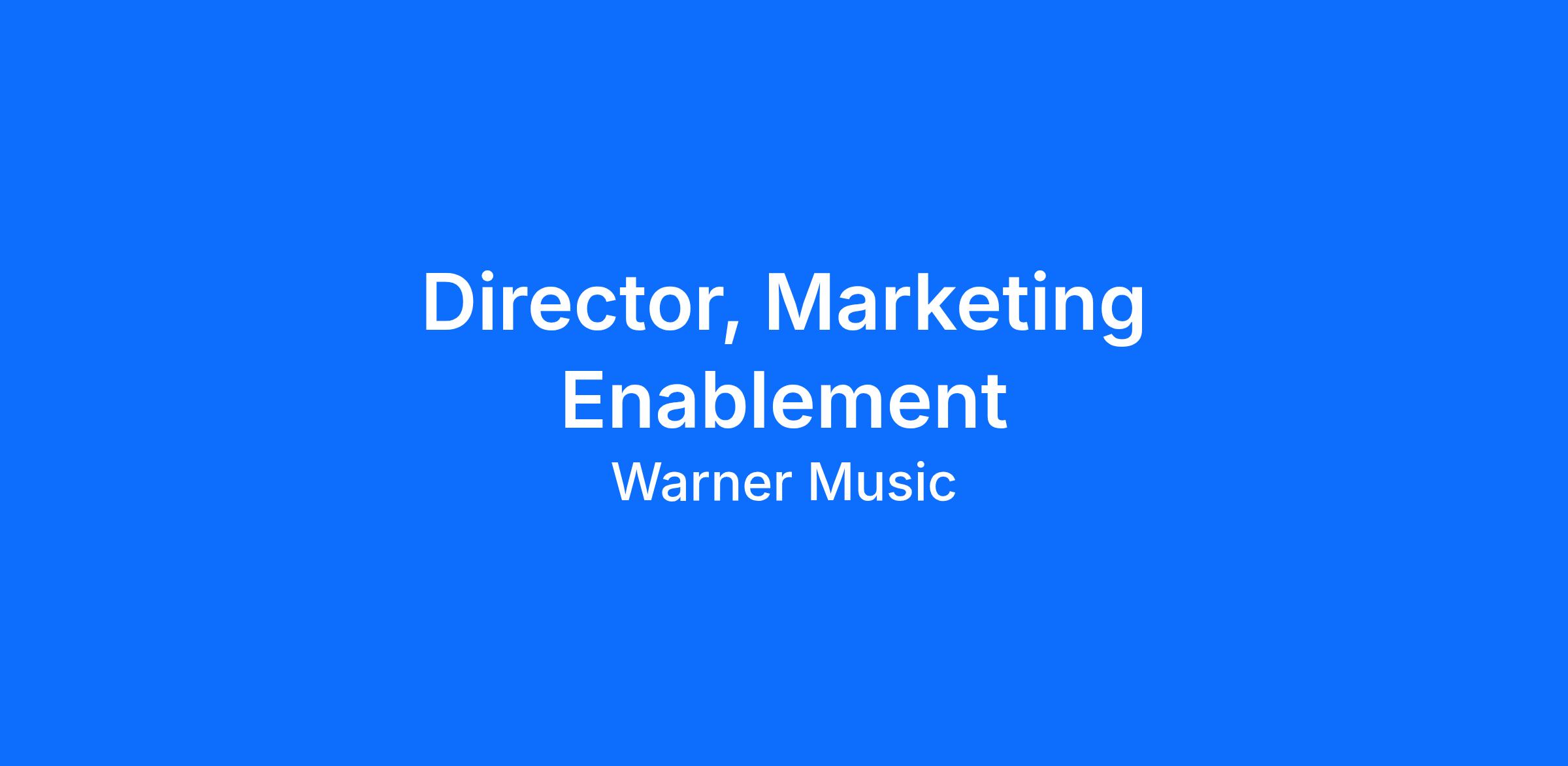 The Director, Marketing Enablement (US) will drive the implementation of WMG’s marketing enablement strategy across labels in the US, ensuring that marketing teams have the tools, platforms, and partner services required to deliver campaigns effectively, efficiently, and at scale.
