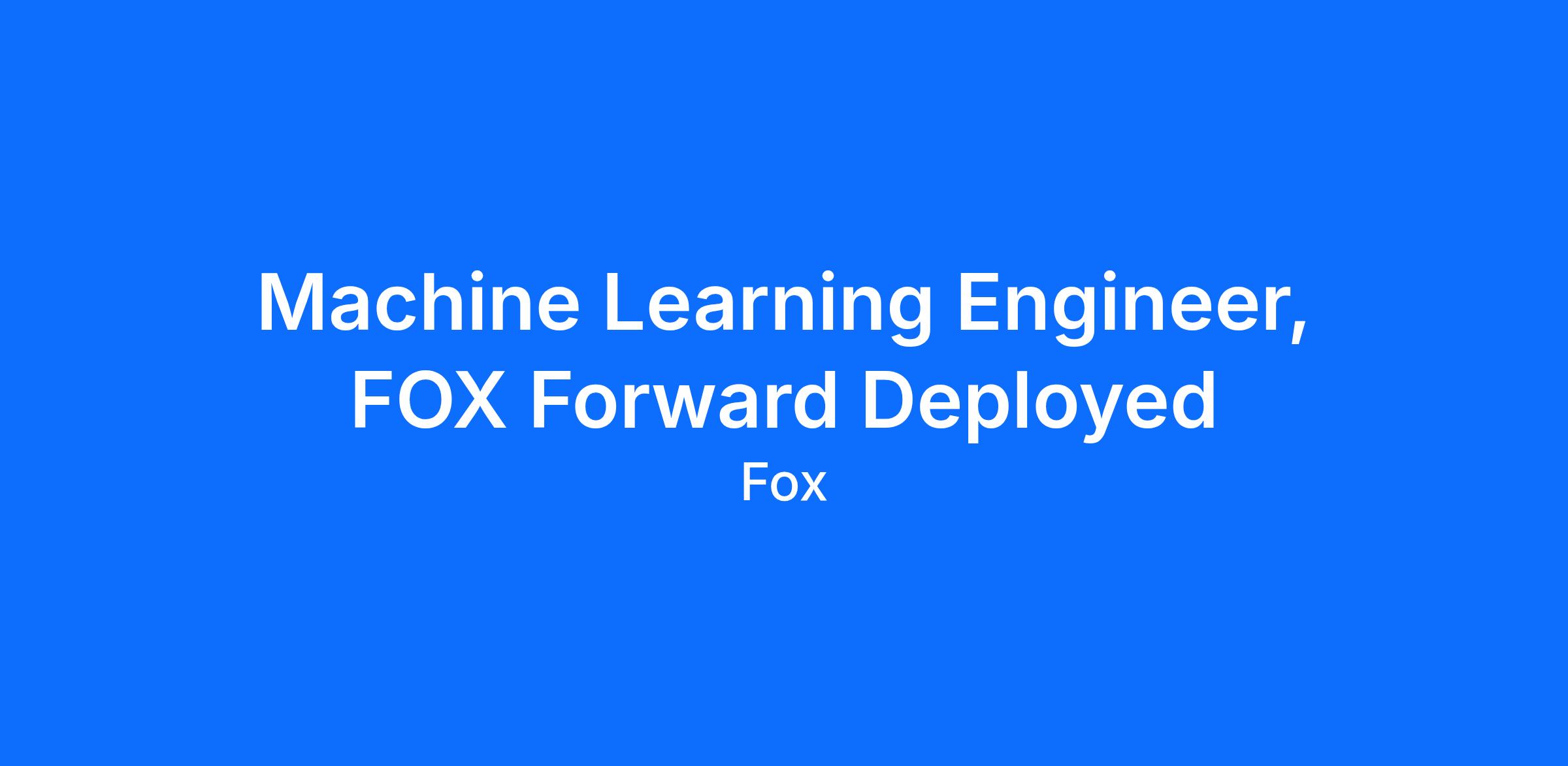 Machine Learning Engineer, FOX Forward Deployed