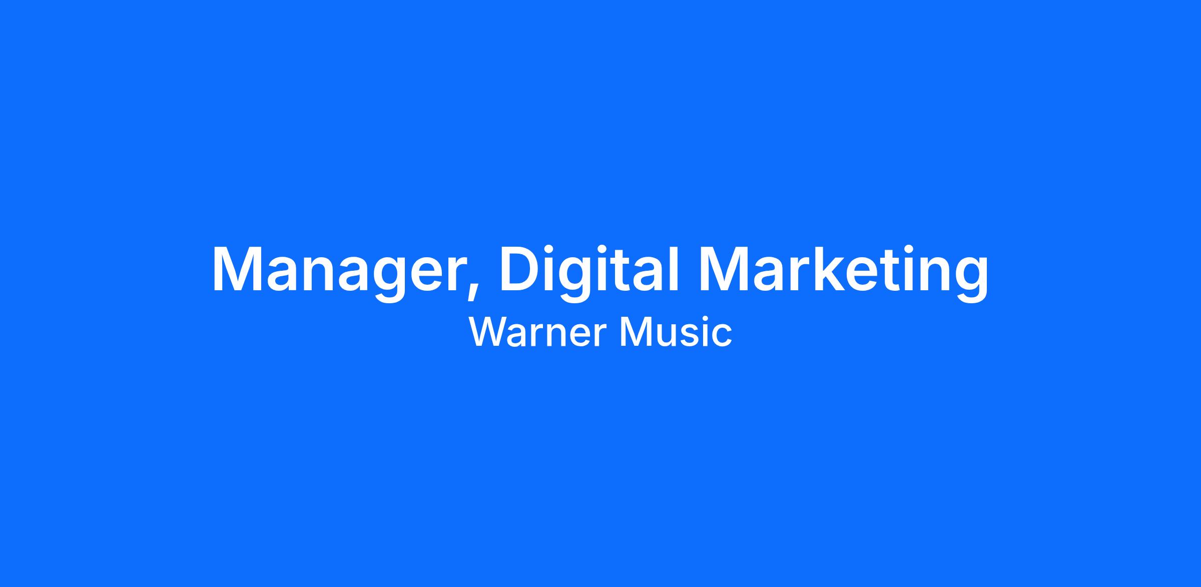 Job Title: Manager, Digital Marketing (Hip Hop, R&B, Global)