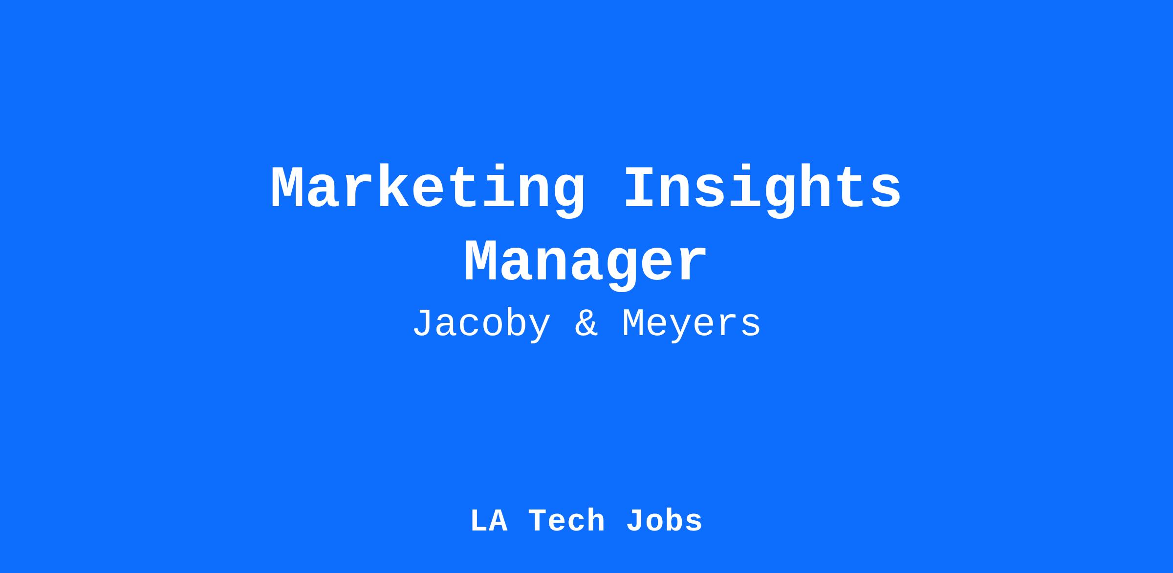 Jacoby & Meyers is the pre-eminent law firm protecting consumers since 1972. We are currently seeking a smart and determined Marketing Insights Manager to join our growing team. At Jacoby & Meyers, every single employee gets to make an impact. Our values guide the way we work with each other. It's a culture where you have the freedom to experiment and push your talents as far as they can go.