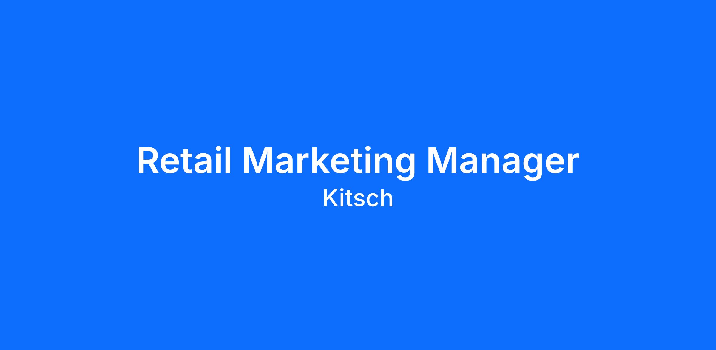 KITSCH is currently looking for a motivated and talented Retail Marketing Manager who will support the development and execution of Marketing Strategies to drive Foot Traffic, Sales, and Brand Awareness for Retail locations.