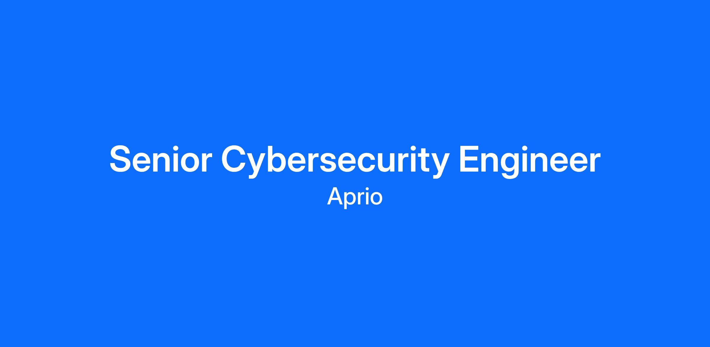 Join Aprio's information Technology team and you will help clients maximize their opportunities. Aprio is a progressive, fast-growing firm looking for a Senior Cybersecurity Engineer to join their dynamic team.