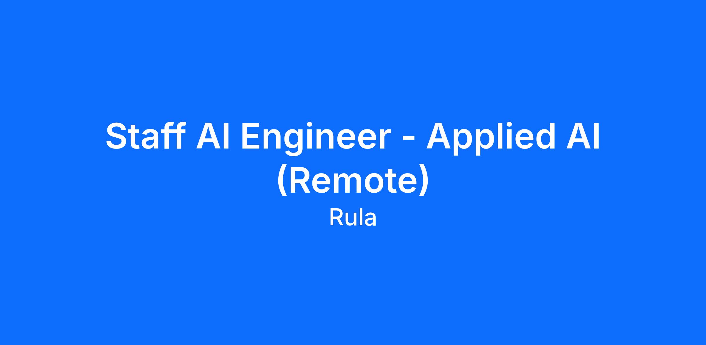 We’re hiring a Staff AI Engineer to lead some of Rula’s most important applied AI investments as we scale. You’ll own technical direction for high-impact AI products, work across teams to turn big ideas into shipped systems, and help raise the bar for how we build, evaluate, and operate AI in production. This role sits at the center of product innovation and engineering execution, with the chance to influence both what we build and how we build it. It’s a strong fit for someone who loves operating in fast-moving environments, wants to drive outsized impact, and is excited to help define the future of AI at Rula.
