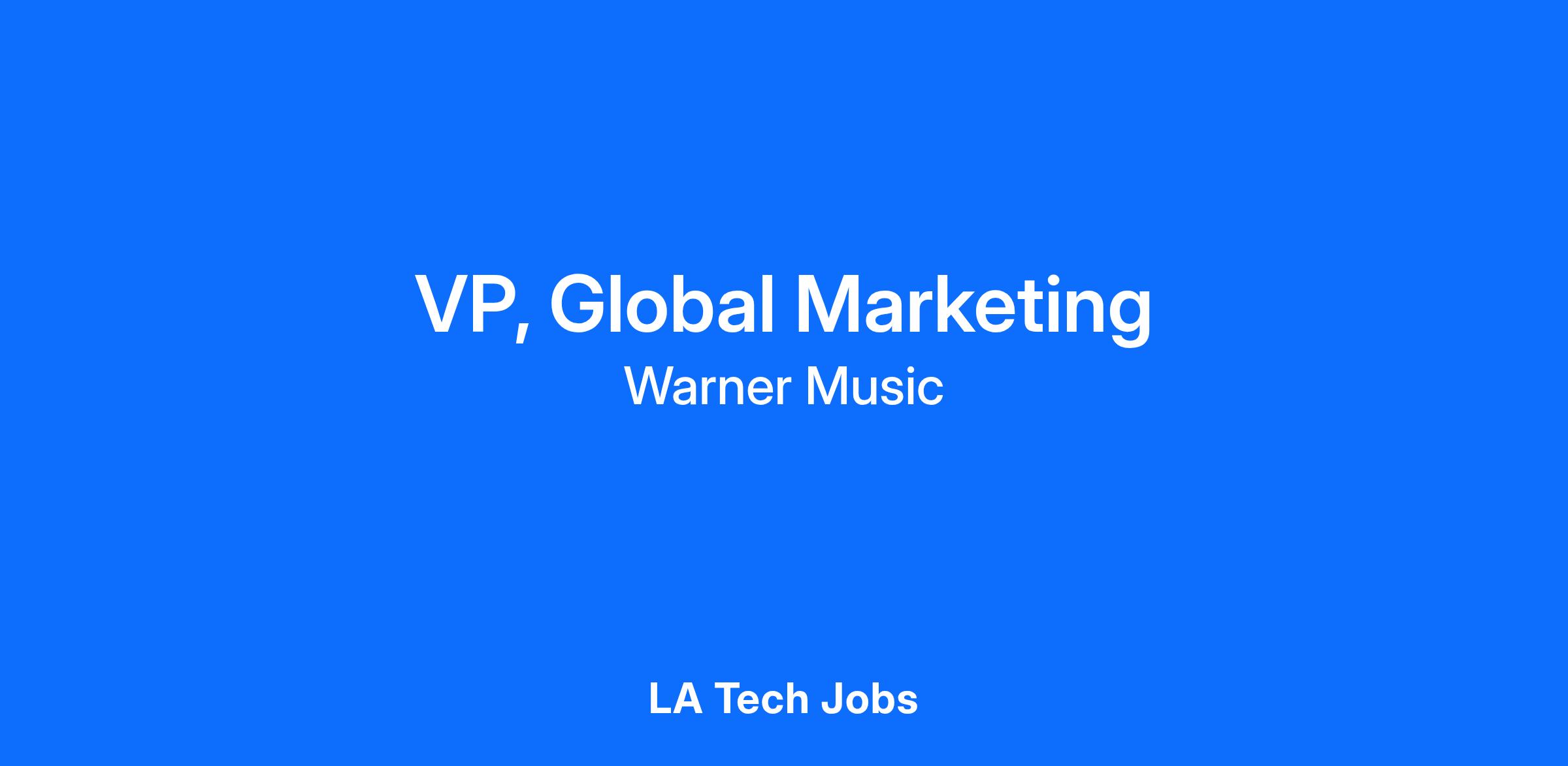 We are seeking a highly organized and proactive VP, Global Marketing to join Warner Music Group’s Global Marketing team.